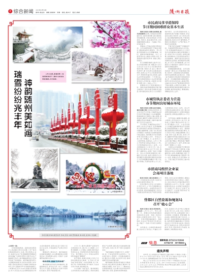 2月6日晚,新春的第一场瑞雪纷扬而下。随州大地处处银装素裹,分外美丽。 随州日报全媒记者李文军、徐斌、陈云,通讯员韩起璞、张玉国、左长虹、刘鑫摄