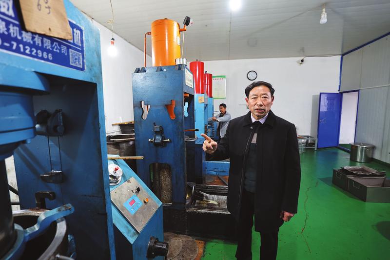 ⑥湖北洪昇食品有限公司2021年收购加工近15万公斤油茶籽,加工销售辐射甘肃、陕西、山西、河南、广东等省和随州周边地区。图为该公司总经理段书勇介绍公司情况