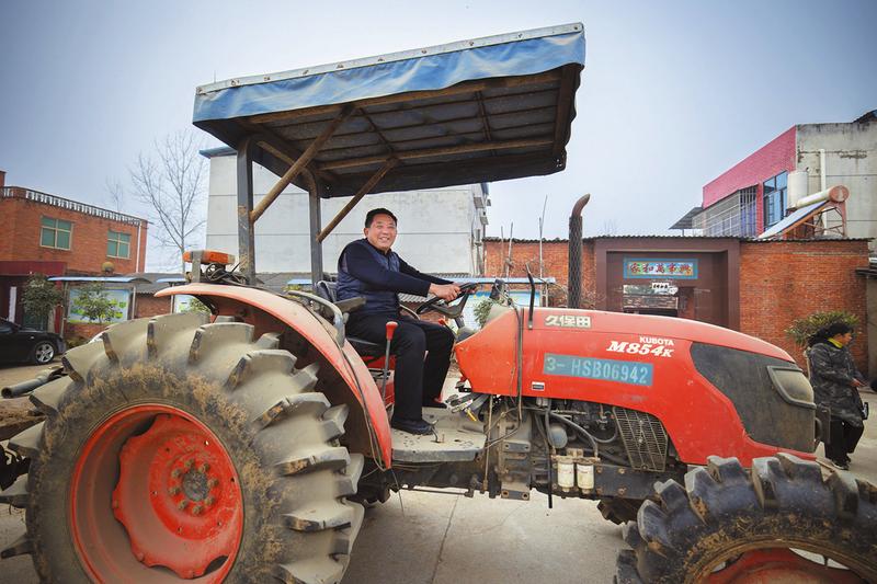 ③随县安居镇夏家畈村种粮大户夏洪清创办的丁丁湾生态农业专业合作社流转种植1600余亩农田。图为他2021年花15万元购买的久保田854旋耕机。