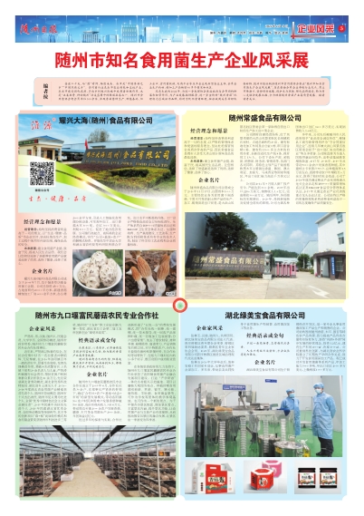湖北绿美宝食品有限公司位于曾都经济开发区,是一家专业从事食用菌深加工产品生产和销售的企业。公司始终围绕随州香菇、木耳、银杏等特色农产品资源,致力提高产品科技含量和市场竞争力,坚持“内销+外销”同步发展的经营理念,投资1.2亿元,建有生产车间4000㎡、冷库1000㎡。公司重视科技创新,与湖北省农业科学院建立了长期的产学研合作关系,致力于开发食用菌深加工产品。现已成功开发食用菌酱等系列产品,年加工能力3000多吨,年出口创汇2000多万美元,上缴税收1000多万元。