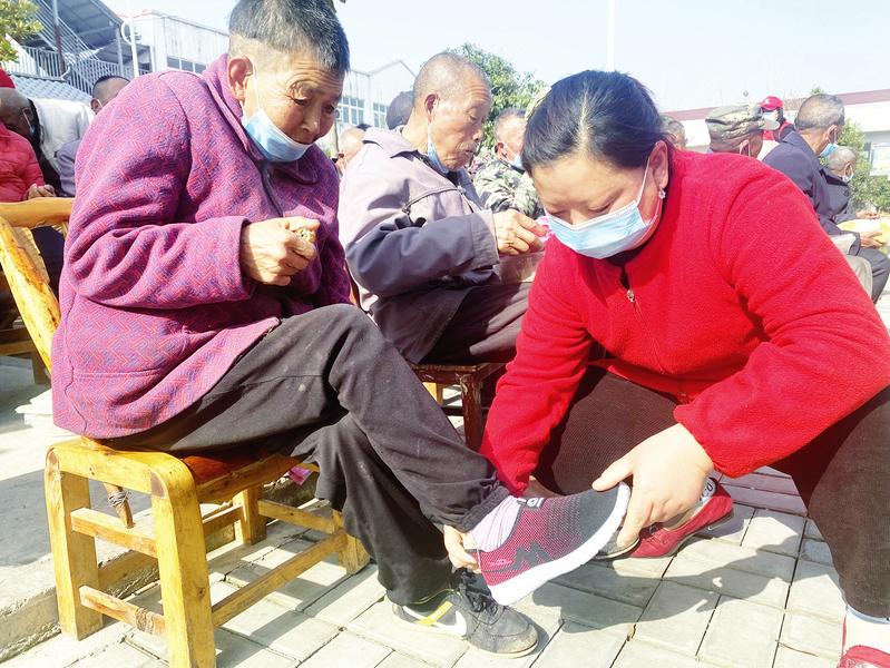 日前,随州市七天连锁酒店的志愿者将一批生活物资送到随县均川镇农村福利院,开展爱老敬老公益慰问活动。(随州日报全媒记者孙洪涛摄)