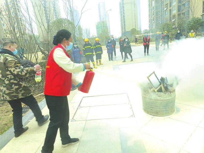 近日,随州高新区十里铺社区联合千千水岸景城小区物业开展了消防安全演练活动,此次实战演练有效强化了电梯、消防安全管理,提高了物业工作人员处理突发事故的救援能力,为创建平安和谐社区打下了扎实的基础。(随州日报通讯员吴娟摄)