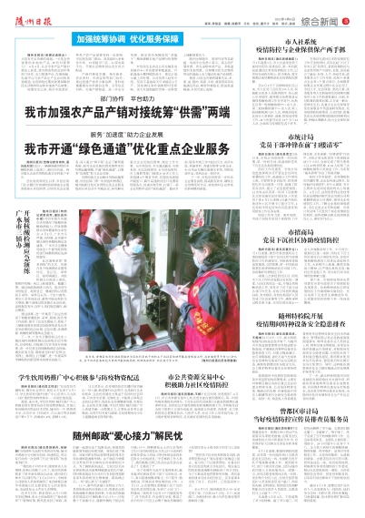 为帮助重点企业解决货物运输难题,市经信部门第一时间组织曾都区、随州高新区相关负责同志及企业服务组部分单位召开专题会议,研究解决重点企业反映的困难,制定工作方案。从市经信局、市交通运输局、市商务局、市应急管理局、市市场监管局、市工商联等部门抽调20余名工作人员组建2个服务专班,在随岳高速随州南匝口、麻竹高速淅河匝口设置现场服务点,快速办理手续,打通了一条企业货物外运的“绿色通道”。截至目前,服务专班已为中盐红四方、东风车轮、利康材料、茂盛生物等14家企业、46台货运车辆办理通关手续,货物加速外运,受到企业一致好评。