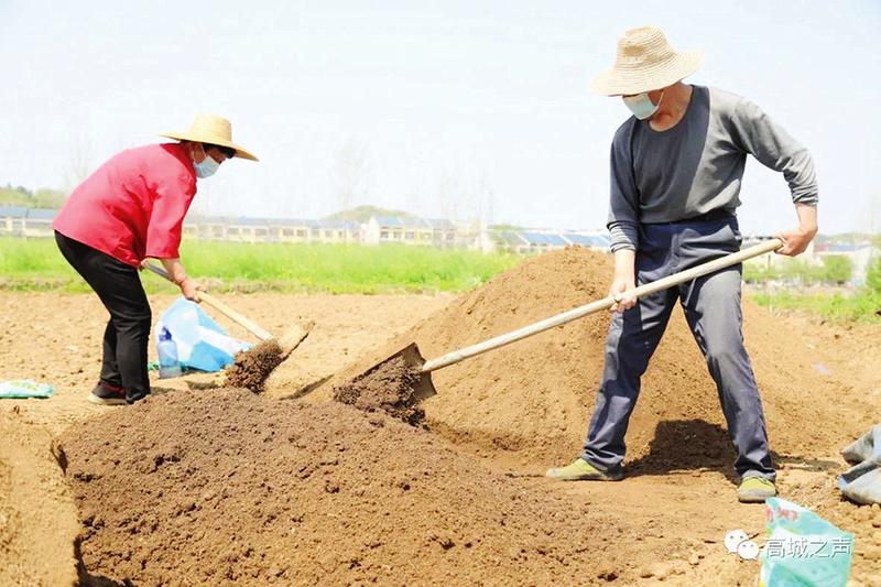 高城镇高黄村村民张玉堂夫妻正在拌匀农肥,为育整秧田作准备。