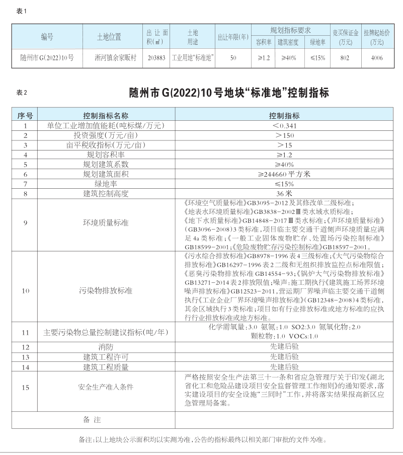 一、挂牌出让地块的基本情况和主要规划指标要求:(见表1)