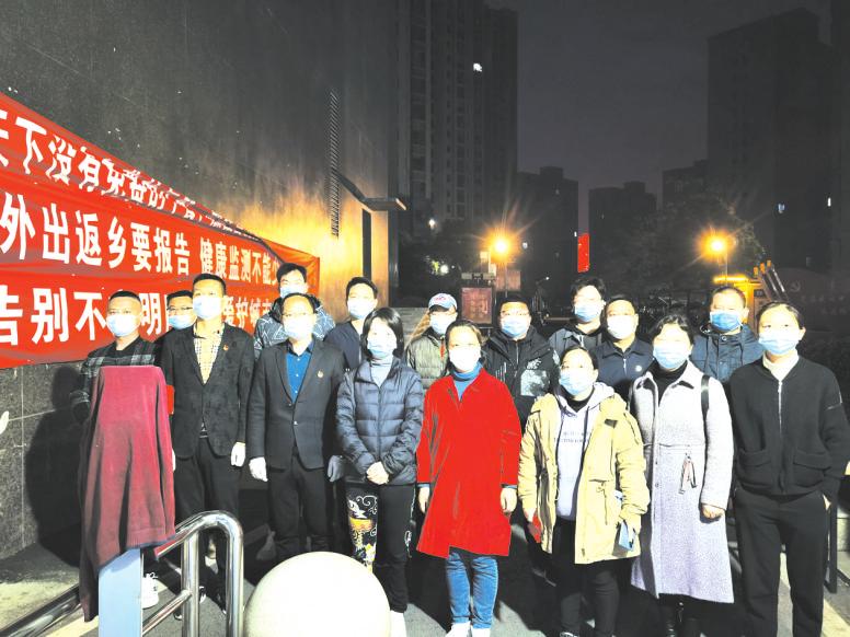 以最快速度与病毒赛跑。大家根据事先分工,一组队员熟练地拉起警戒线,布置好核酸检测场地;另一组队员则和小区物业人员一起,对照住户名单开启“扫楼”模式,挨家挨户敲门提醒居民下楼做核酸,确保不漏一户、不落一人。检测采样现场,队员们引导群众有序排队,协助登记信息,并耐心提醒居民做好个人防护。