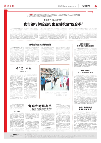 随州日报讯(通讯员李小蓉、毛雯)面对新一轮新冠病毒来袭,曾都汇丰村镇银行强化使命担当、积极作为,以实际行动保障各项金融服务工作正常运行,为稳定金融秩序贡献力量。