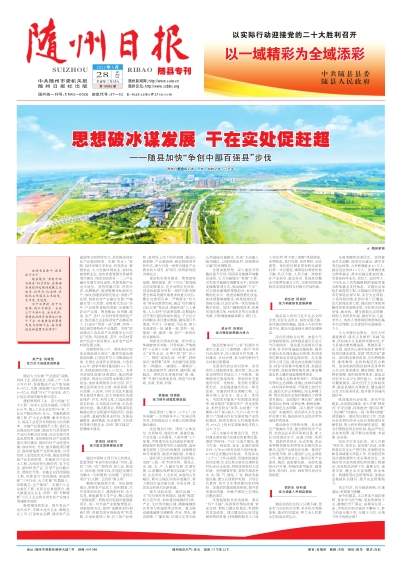如今的随县,正以更加开阔的视野、更加非凡的气魄、更加昂扬的斗志,激情担当干事业、奋勇争先创一流,为争创中部百强县不懈奋斗,努力创造无愧于党、无愧于人民、无愧于时代的新业绩!