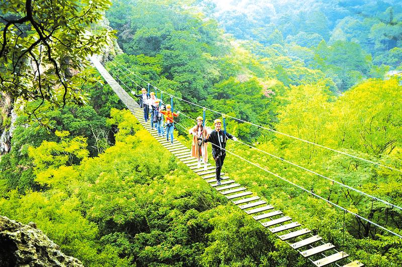 大洪山户外丛林探险共打造了丛林飞跃、丛林飞索和丛林攀岩三种经典项目。这种绿色户外健康活动,惊险刺激,具有探险性质。通过钢索串联每个节点,形成空中走廊,利用高低落差的重力,通过钢索、树木空中平台完成丛林飞索之旅,体验自由滑翔的快感,激发人的潜能,展现人的勇敢与机智,让人战胜内心懦弱、找回自信。据悉,丛林飞索是国内首家、全世界规模最大的新型户外丛林飞索项目。
