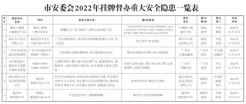 市安委会关于2022年挂牌督办重大安全隐患的通知