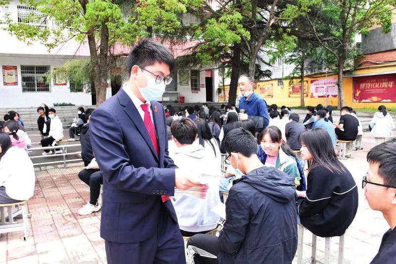 5月20日,广水市法院联合该市公安局走进武胜关镇中心中学,开展法治进校园活动,为同学们送去一堂精彩生动的法治宣传课。 (随州日报特约记者程淇、通讯员周丽丽、蒋思铭摄)