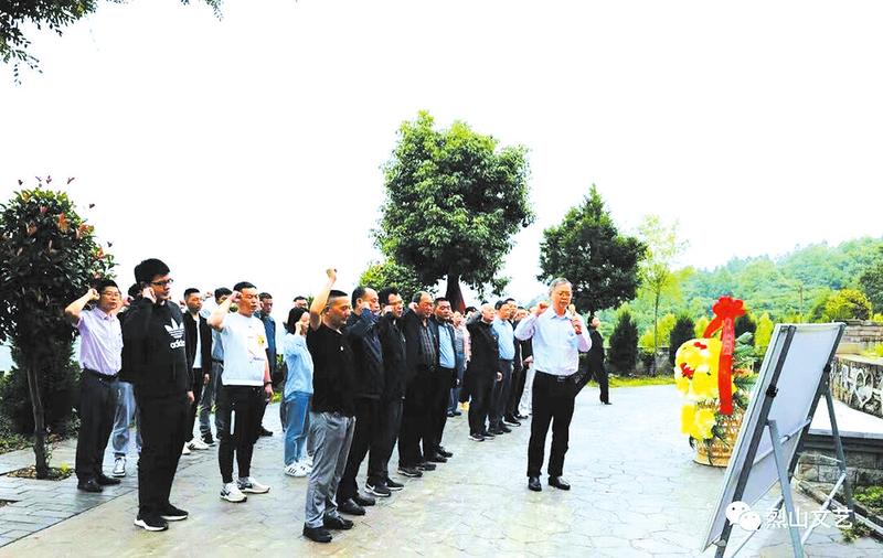 为深入推进“清廉金融文化建设”活动,日前随州银保监分局组织全体党员干部和职工到红色教育基地,开展革命传统教育。图为该局党委负责人领誓入党誓。(随州日报通讯员朱希刚刘成鸿摄)