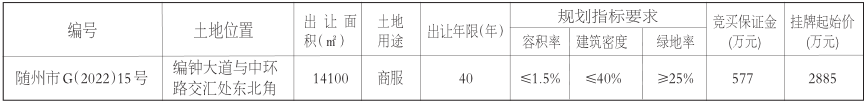 随州市国有建设用地使用权网上挂牌出让公告