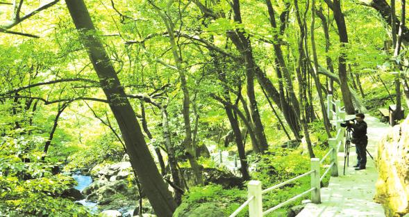 “苍松翠柏长生地,绿水青山古洞天。”隐匿于宝珠峰旁的白龙池,海拔840米,犹如一面碧绿的明镜悬挂于山峦之间。这里一面是蓝蓝的湖水,一面是碧绿的丛林和栈道。阳光照耀下,树影婆娑,在漫步中,寻找光影中的你。◆观星摄影状元台