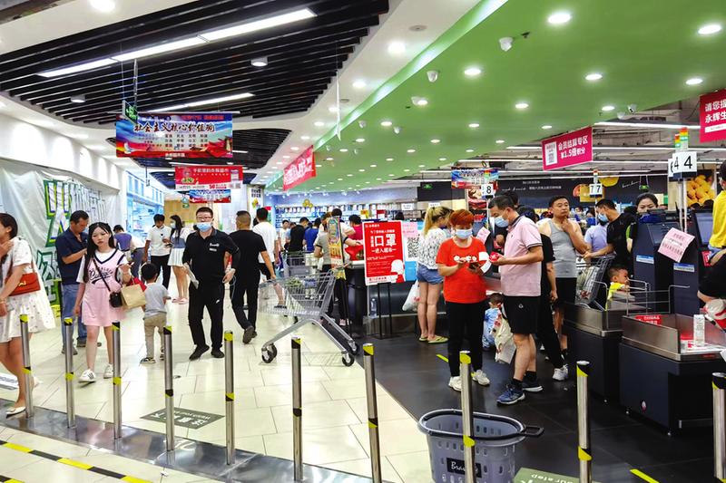 湖北省消费券发放后,我市迎来第一个周末消费高潮。图为6月17日晚万达广场超市消费火爆。 (随州日报全媒记者 李文军摄)