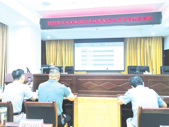 推动水利系统安全生产月活动走深走实。6月21日,该局组织举办2022年全市水利和湖泊系统质量安全监督管理培训。邀请了相关专家授课,集中观看《生命重于泰山——习近平总书记关于安全生产重要论述》专题片,学习了安全生产政策法规;安排部署近期水利工程质量安全工作。进一步提升了全市水利和湖泊系统监督管理队伍质量、安全意识和监督管理水平。