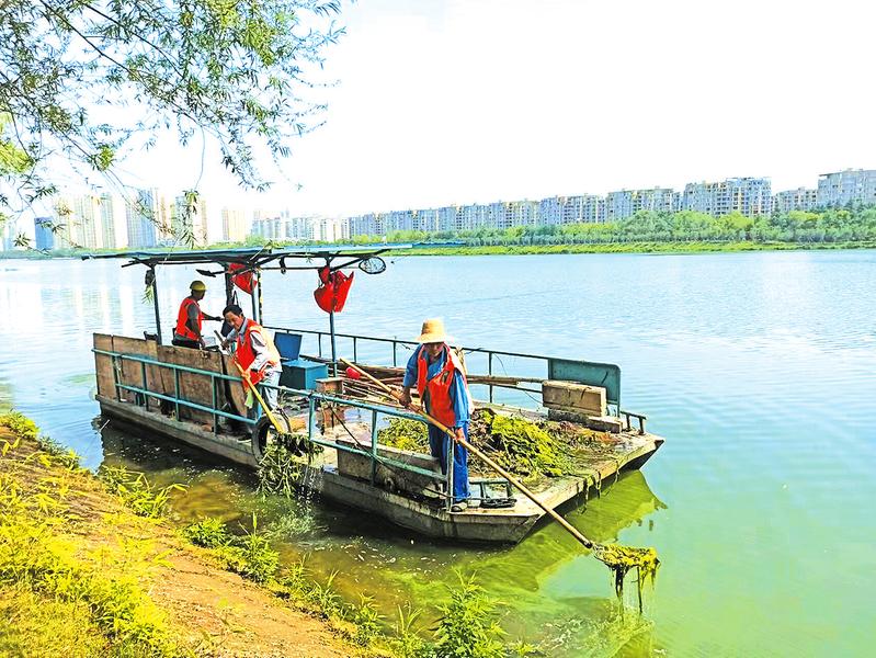 湖面,打捞船在来回作业;两岸,白云湖水利工程运维中心人员加强日常巡视,对保洁工作中发现的问题,及时向保洁公司提出整改意见,督促整改。
