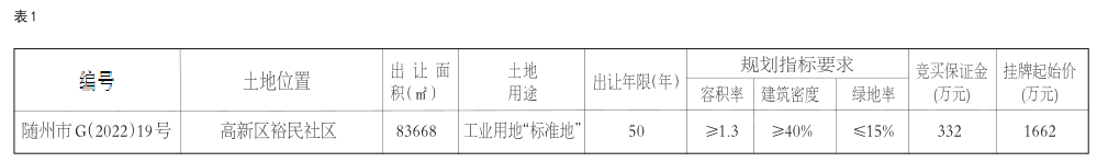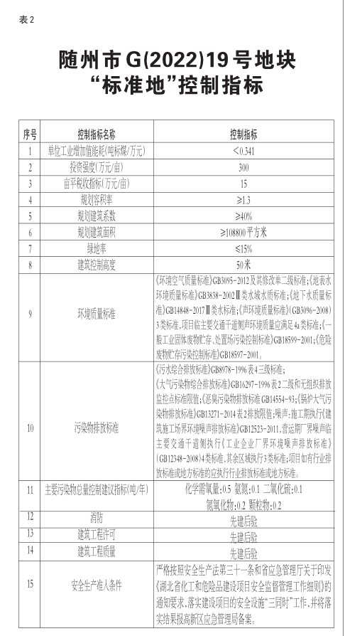 随州市G(2022)19号地块“标准地”控制指标(见表2)
