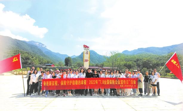 7月1日建党节,泰康人寿随州中支组织80余名内外勤员工到随县田王寨爱国教育基地开展以“奋进新征程,保险守护稳稳的幸福”为主题的“7·8全国保险公众宣传日”公益健步走暨党建学习活动。