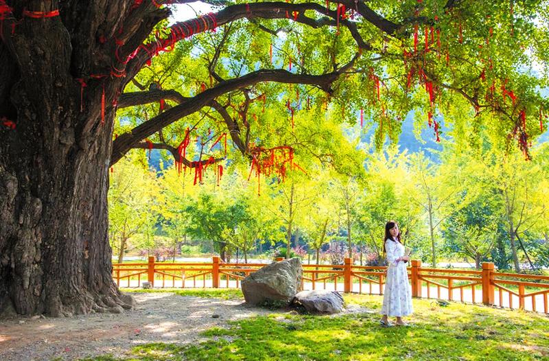 千古银杏千古情,不负如来不负卿。千年银杏广场上,古老的银杏树静静地守候在这里,沐浴世间最纯净的阳光雨露,用时间画着年轮,也画着一段不老的岁月。称为镇山之宝的“银杏王“,需8个成人才能合抱。相传此树为大洪山开山祖师慈忍大师所栽,抱抱此树,万事顺心。此处是值得每个人停留的地方。在古银杏巨大的荫笼下,骄阳只是感受清凉时的一道光景。放下俗尘,就在这大树下的草地上静静地坐、尽情地聊,轻轻体味岁月静好……