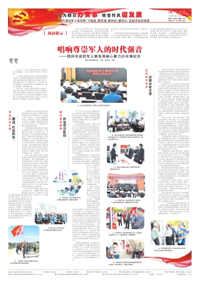 为贯彻好钱远坤书记的讲话精神,为全面反映一个多月来我市各级各部门扎实开展党员干部“下基层、察民情、解民忧、暖民心”实践活动的典型事迹,随州日报发挥主流媒体功能,从7月12日始,特别推出:聚焦部门党员干部“下基层、察民情、解民忧、暖民心”实践活动——“我为群众办实事·转变作风促发展”专题宣传,今日刊发的是随州市退役军人事务局凝心聚力办实事纪实,敬请读者关注。