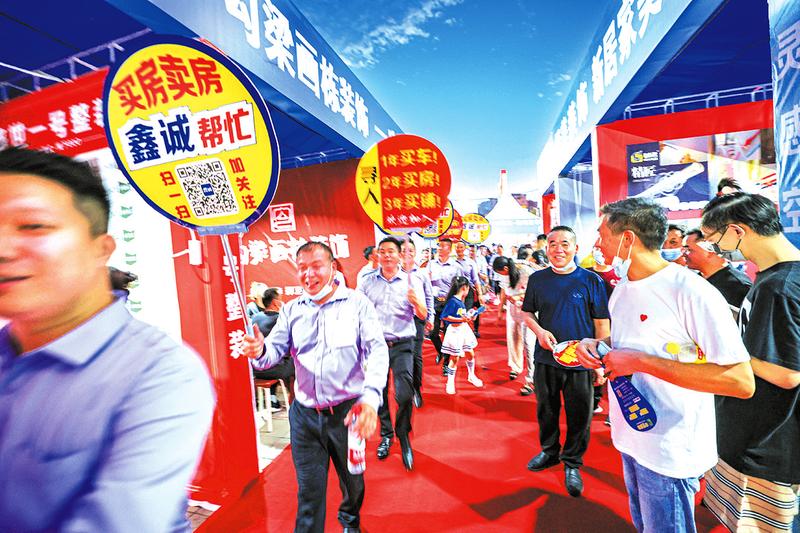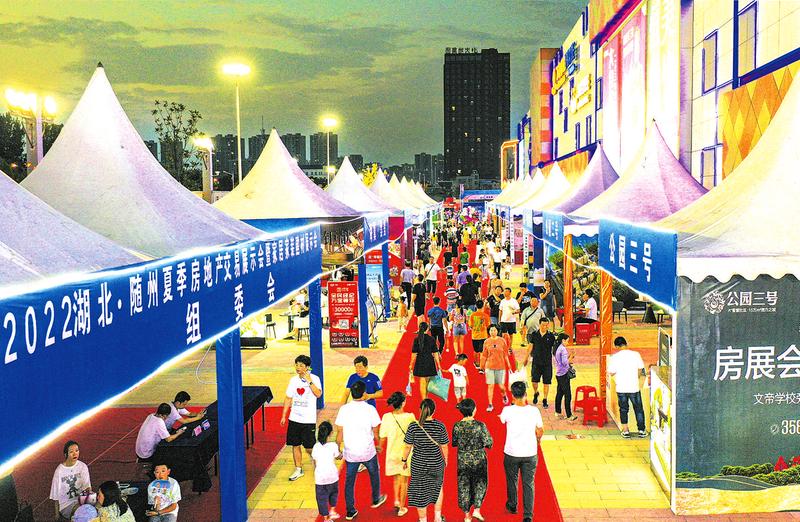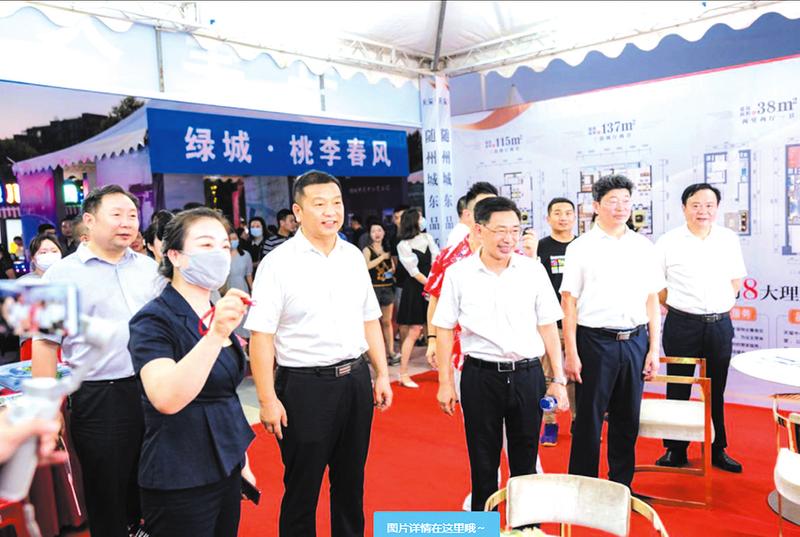 随州万达广场一号门前,“品质生活·乐居随州·2022湖北随州夏季房地产交易展示会”现场,主舞台上,精美的文艺表演,热烈着展会气氛。台下,各家房企精心布置展台,纷纷使出浑身解数,通过模型展板、宣传视频、直播讲解等多种形式,向广大市民介绍各自项目情况。高层、洋房、叠拼、别墅等品类丰富的住房产品,吸引不少市民驻足、咨询。