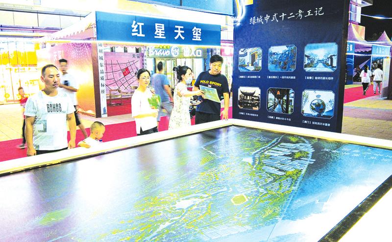 在绿城玉园、瑞帝新世界等房地产项目展台看到,参观、咨询的市民接连不断,工作人员耐心地接待、解答各类问题。
