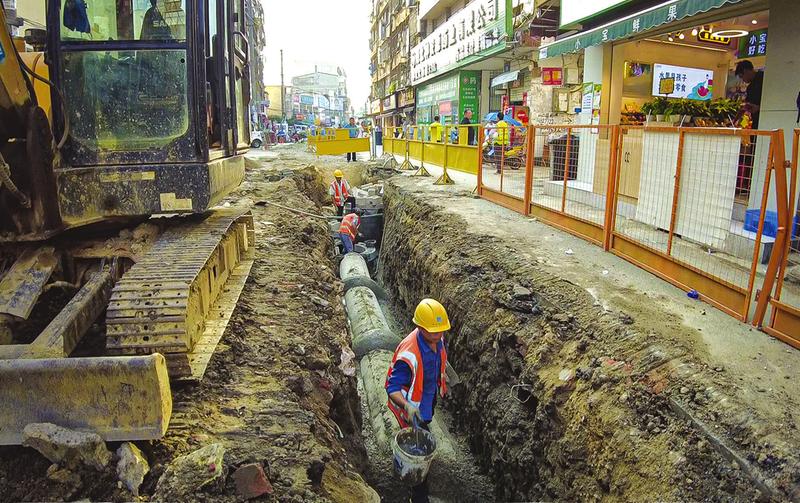 面对持续高温天气,我市重点工程项目在不延误工期的情况下,采取错时作业,尽量减少高温对工人的身体伤害。图为7月21日早晨7时30分,中建三局工人正在进行东关学校巷子改造项目施工。 (随州日报全媒体记者 李文军摄)