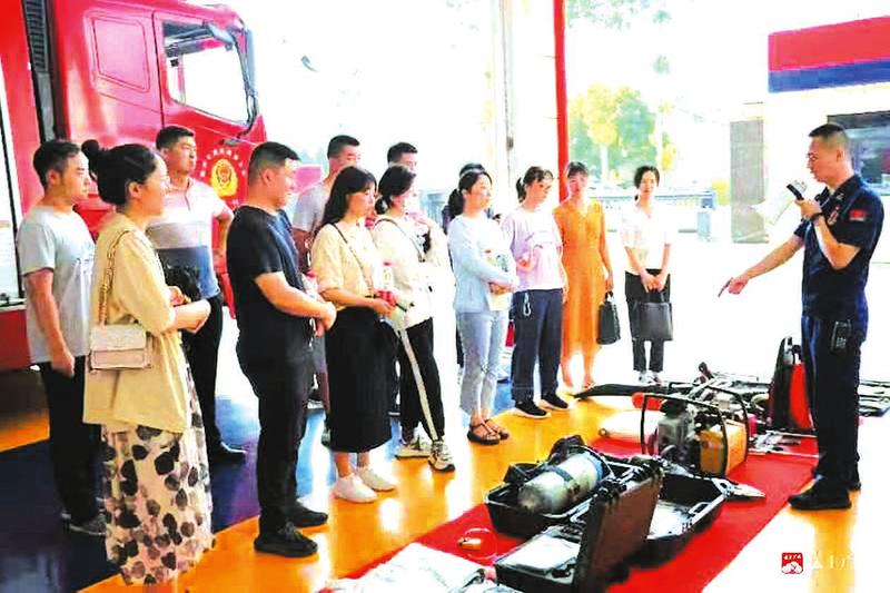 近日,广水市武胜关镇组织20余名青年干部走进广水市消防救援大队学习消防知识,与救援站指战员开展实操互动体验、交流,向消防队员取“真经”。 (随州日报通讯员 熊瑞摄)