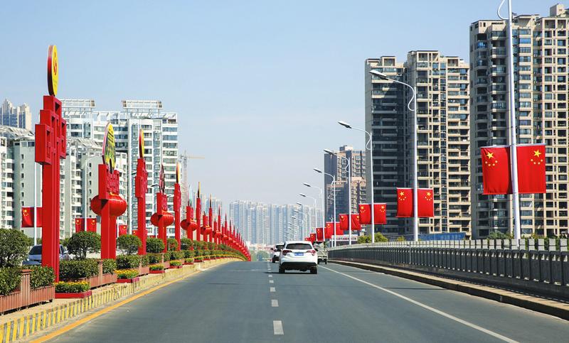 在城区迎宾大道、白云大道、神农大道、烈山大道、白云湖东大堤等路段,在府河大桥、舜井大桥、㵐水一桥、㵐水二桥、青年路大桥等桥梁,在随州火车站、随州高铁南站等站点,以及城区公园、广场、游园等公共场所,五星红旗迎风招展,大红灯笼喜气洋洋。国庆喜庆祥和的节日氛围,在一抹“中国红”间流淌洋溢,“中国红”成为街头最美的色彩。