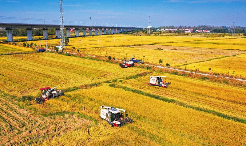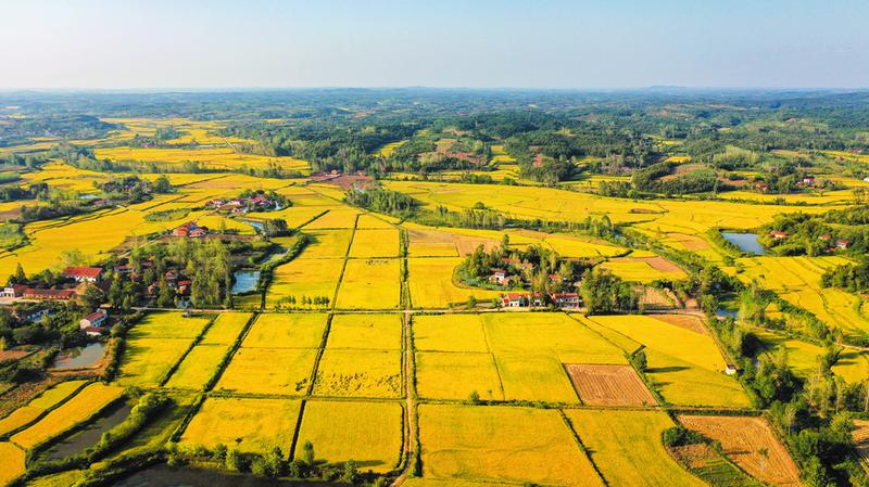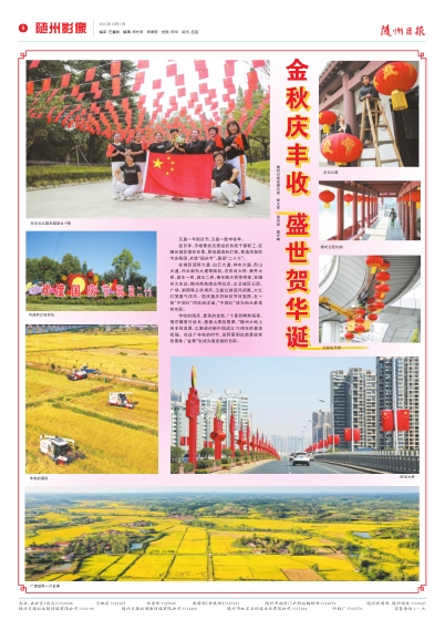 丰收的国庆,最美的金秋。“十里西畴熟稻香,槿花篱落竹丝长,垂垂山果挂青黄。”随州大地上的丰收美景,汇聚成对新中国成立73周年的最美祝福。在这个丰收的时节,田野里到处都是收获的景象,“金黄”也成为最亮丽的色彩。