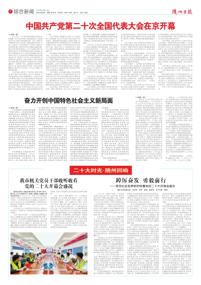 中国共产党第二十次全国代表大会在京开幕 习近平代表第十九届中央委员会向大会作报告