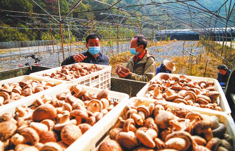 10月24日,游客在曾都区洛阳镇购买新采摘的香菇。据当地菇农介绍,今年香菇行情看涨,他们每天采摘的香菇大多第一时间发给外地的客商。 (随州日报全媒记者 孙洪涛摄)