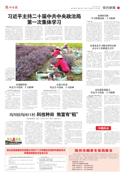 随州日报讯(全媒记者陈巧玲、见习记者陈巧巧)10月26日,市政协党组书记、主席冯茂东主持召开市政协党组(扩大)会议暨理论学习中心组学习(扩大)会议,传达学习党的二十大精神,强调要学习好宣传好贯彻好党的二十大精神,踔厉奋发、担当有为,以责任政协建设书写新的赶考路上政协履职新答卷。