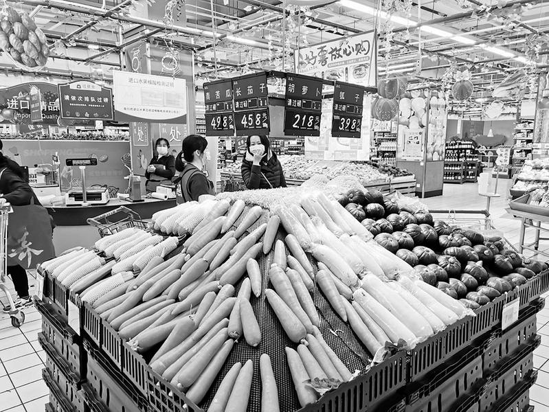 市民在大润发超市选购蔬菜(随州日报全媒记者 张琴摄)