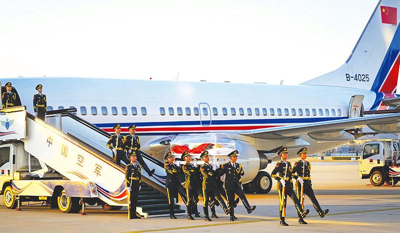 12月1日,江泽民同志的遗体从上海由专机敬移到达北京。(新华社发)