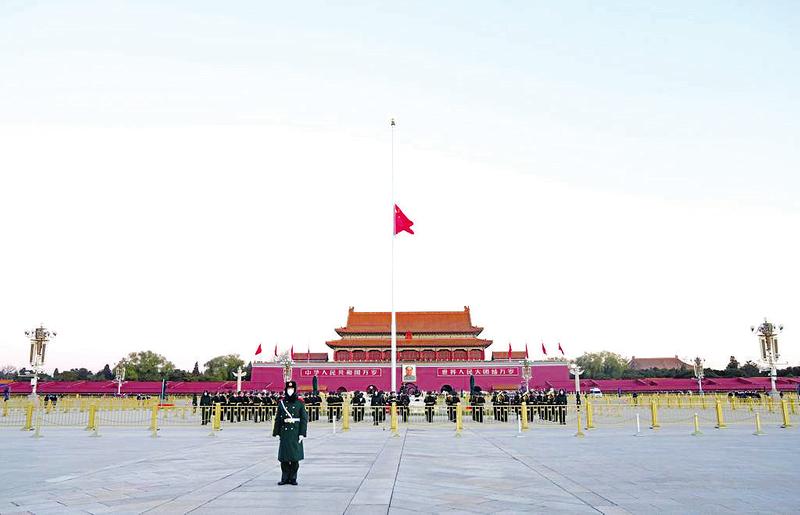 12月1日,北京天安门下半旗志哀,悼念江泽民同志逝世。(新华社发)