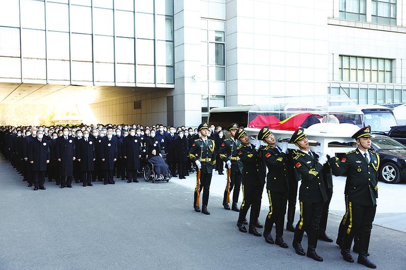 习近平、李克强、栗战书、汪洋、李强、赵乐际、王沪宁、韩正、蔡奇、丁薛祥、李希、王岐山、胡锦涛等到中国人民解放军总医院为江泽民同志送别,护送江泽民同志的遗体上灵车。(新华社发)
