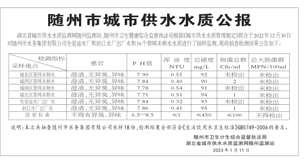 随州市城市供水水质公报