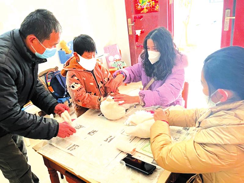 近日,曾都区白云湖学校教师走进留守儿童的家中,陪孩子一起做手工,让留守儿童感受到更多的关爱。 (随州日报通讯员 孙秀芬摄)