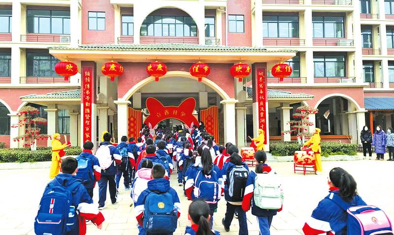 2月6日上午8时,白云湖学校举行了“击鼓以明志,敲响新学期”的开学仪式。活动旨在让同学们对开学有仪式感和敬畏感,激励同学们勤奋学习,志存高远。学生家长纷纷表示,看着孩子在这样有仪式感的活动中开启新学期非常感动,同时对孩子的成长充满期待。 (随州日报全媒记者 王松 通讯员 孙秀芬摄)