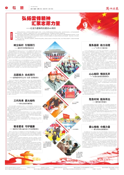 今年是毛泽东等老一辈革命家为雷锋同志题词60周年。60年来,学雷锋活动在我市持续深入开展。在新时代新征程上,我市深刻把握雷锋精神的时代内涵,发挥党员、干部模范的带头作用,加大志愿服务保障和支持,不断发展壮大学雷锋志愿服务队伍。