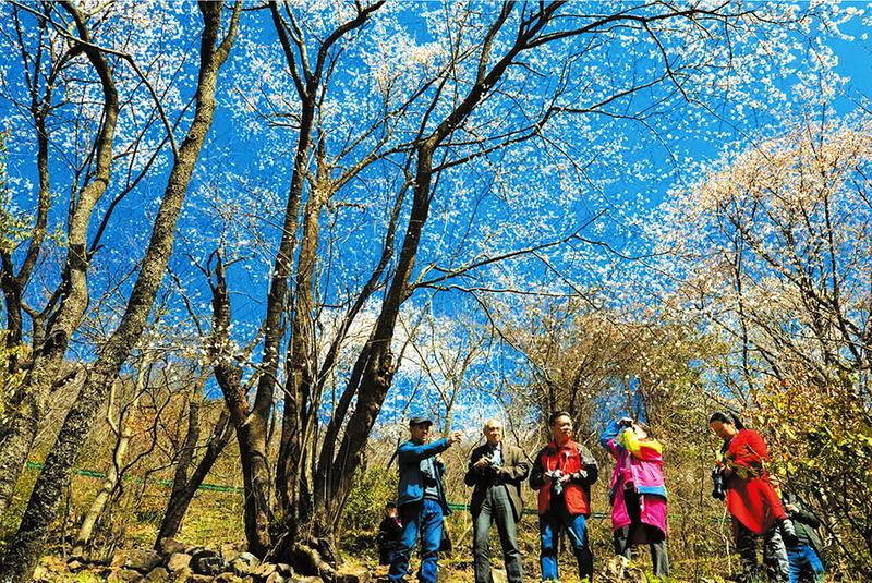 来自武汉的刘先生一家已是第二次到大洪山来游玩,听说举办樱花徒步大会,特意约上朋友一起徒步看野樱花。刘先生表示,大洪山的野樱花开在山谷,热烈奔放,大家边走边看边互动,更有体验感,尤其是邂逅了“冰凌野樱”奇观,不虚此行。此外,这里空气清新,也很安静,闲暇之余登金顶,看日出,住自在谷酒店,很是惬意。