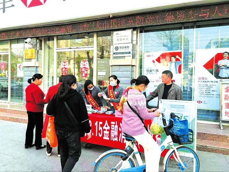 近日,汇丰村镇银行组织员工志愿者走上街头,向市民宣传金融消费知识,不断提升市民金融认知能力、金融安全意识和风险识别能力。(随州日报通讯员 李小蓉 毛雯摄)