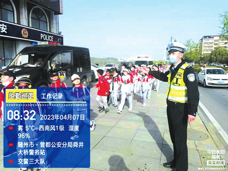 近日,曾都区实验小学组织1000余名师生徒步前往随州市烈士陵园开展祭扫活动,缅怀革命英烈。为保障早高峰交通出行畅通有序,随州交警及时与学校负责人取得联系,准确掌握出行路线,科学布置警力,给学生们出行创造良好的道路交通环境。 (随州日报通讯员 解超摄)