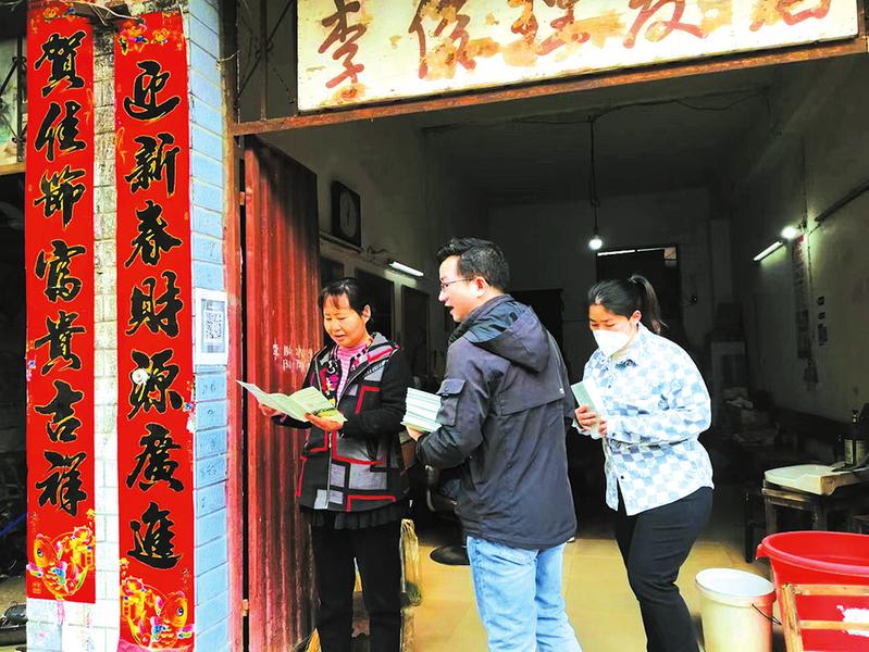 近日,随县唐县镇财政所组成的政策宣传小组深入群众,对新印发的《随县惠民惠农财政补贴资金“一卡通”发放政策宣传册》进行了广泛宣传,把一本本宣传册送到村民手中。 (随州日报通讯员 唐正发摄)