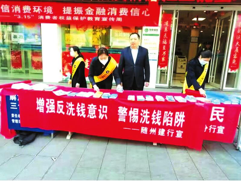 为营造和谐的金融环境,连日来,建行随州分行组织员工走上街头,向市民开展反洗钱宣传活动,有效提升社会公众反洗钱意识。 (随州日报通讯员 钱星豫摄)