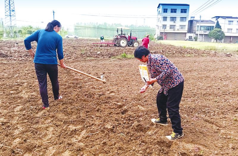 随州高新区淅河镇孙家畈村严格落实耕地保护政策,对于前些年占用农田栽植杨树等速生林的地块,按照要求退林复耕,用于种植粮食作物。图为该村三组村民近日在退林复耕的地块上播种玉米。