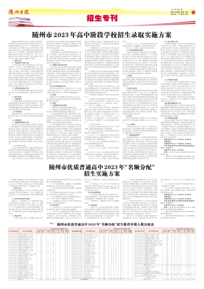 随州市优质普通高中2023年“名额分配”招生实施方案