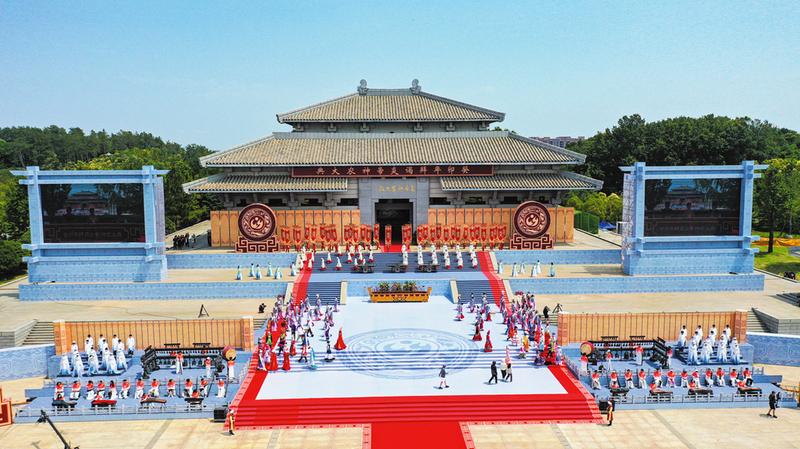 6月12日,癸卯年世界华人帝故里寻根节拜祖大典仪式带妆彩排在炎帝故里景区谒祖广场举行。(随州日报全媒记者 李文军摄)